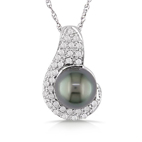 !±8±14k White Gold Black Tahitian Cultured Pearl with Diamond Accent Pendant (1/4 cttw, H-I Color, I1-I2 Clarity), 17"
